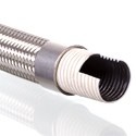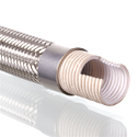 PTFE波紋金屬軟管 應用: Medium pressure applications with hydraulic fluids and aggressive media 應用范圍: 主要用于化學與食品工業 規格: 白色PTFE材料的螺旋波型PTFE內襯 屬性: Due to the wide curl good self-cleaning properties 食品安全 金屬軟管材料: PTFE(聚四氟乙烯) 編織網套: 1個編織網套: 材料1.4301 / 1.4306 溫度: min. -70 °C 溫度: max. 260 °C 溫度: 僅適用于金屬軟管 許可: 基礎材料具備FDA許可:證。 |