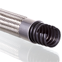 PTFE波紋金屬軟管 應用: Medium pressure applications with hydraulic fluids and aggressive media 應用范圍: 主要用于化學與食品工業 規格: 黑色PTFE材料的螺旋波型PTFE內襯 antistatic design 屬性: Due to the wide curl good self-cleaning properties 食品安全 金屬軟管材料: PTFE(聚四氟乙烯) 編織網套: 1個編織網套: 材料1.4301 / 1.4306 溫度: min. -70 °C 溫度: max. 260 °C 溫度: 僅適用于金屬軟管 許可: 基礎材料具備FDA許可:證。 |
