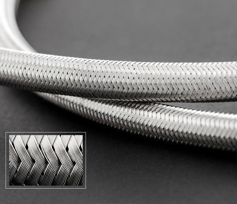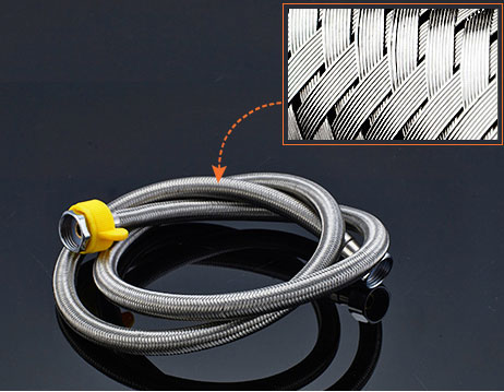 每股金屬軟管由8跟304鋼絲精密編織而成,不跳絲,抗彎曲,耐腐蝕
