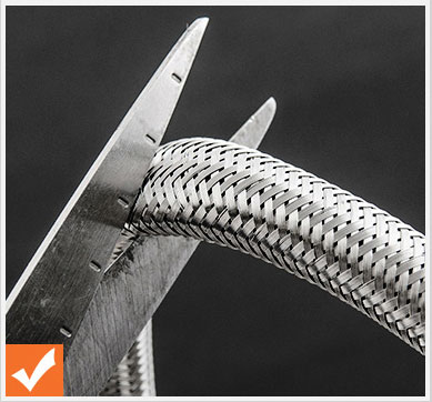 實驗證明:閔彬防爆金屬軟管采用真正304不銹鋼,具有強度高,韌性好,防爆裂、耐高壓等優點,與其他同類價位的金屬軟管同力作用下,剪切無破損。