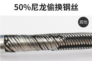 實驗證明:金屬軟管采用201不銹鋼,具有不走絲,燒不著等優點,將不銹鋼和尼龍混在一起,品質經不起火煉。