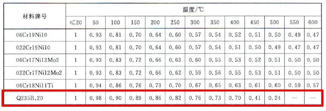 3.溫度修正系數波紋管、網套和接頭常用材料的溫度修正系數見下表:
